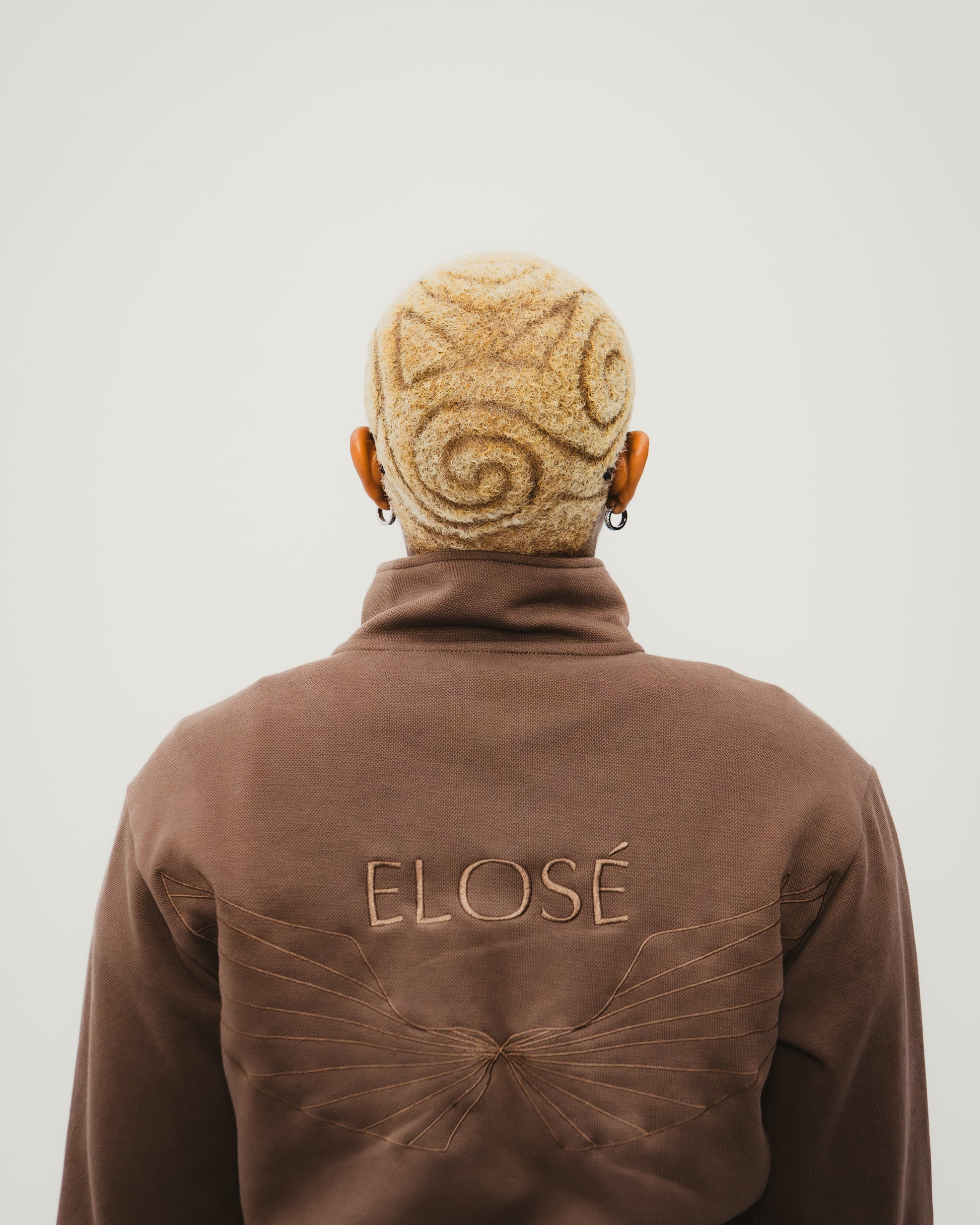 This jacket is made from medium weight, soft cotton pique with gold accents and brown embroidery throughout perfect for the fall. It is cut in a comfortable straight shape with a smart collar, while ribbed waistband and cuffs complement the sporty style. Complete with two additional side pockets.